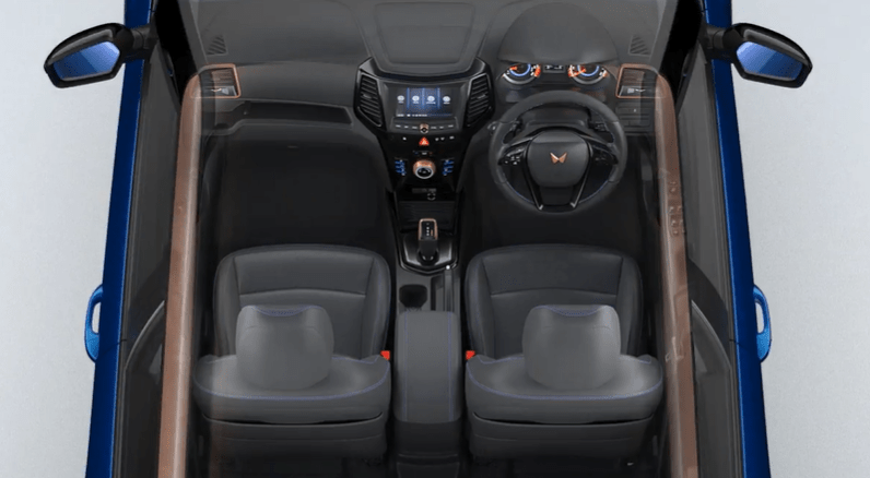 The interior of the Mahindra XUV400 is spacious and comfortable, with plenty of legroom and headroom for passengers. The car comes with premium leather seats and a leather-wrapped steering wheel, adding a touch of luxury to the cabin. It is equipped with advanced features like a 10.25-inch touchscreen infotainment system, a digital instrument cluster, automatic climate control.