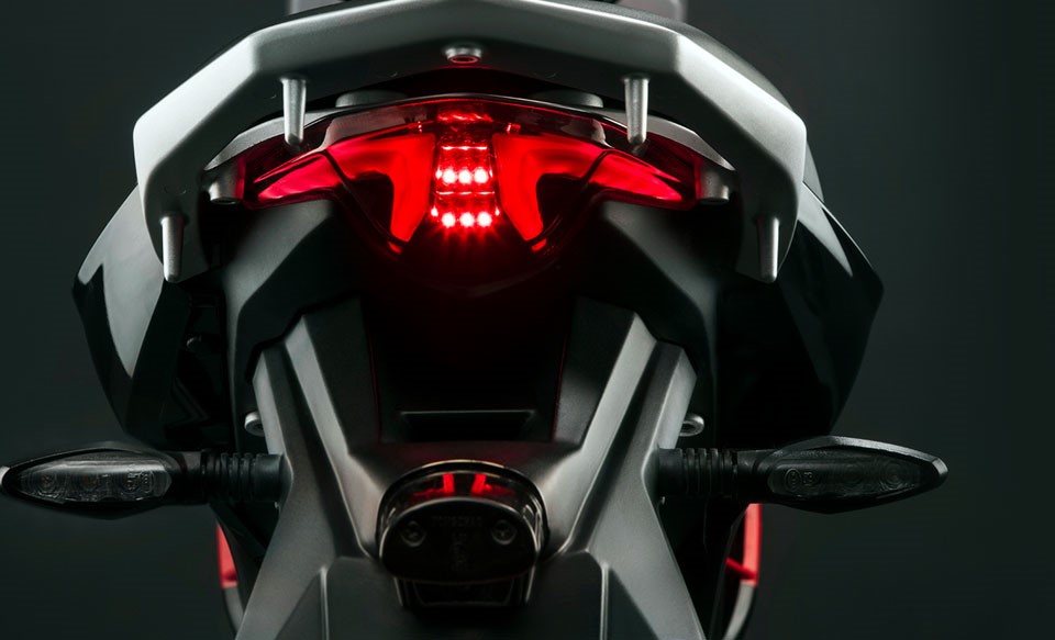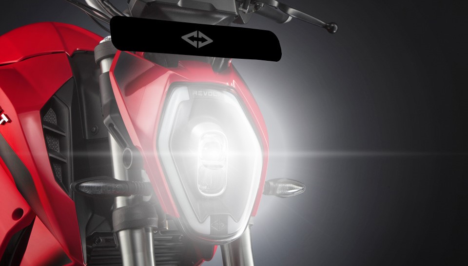 The Revolt RV400 is a sporty-looking motorcycle that combines sleek lines with bold features. It has a sharp front end with a distinctive LED headlight that gives the bike a modern and aggressive look. The body of the bike is made of lightweight materials, which makes it easy to maneuver and control. The bike comes in three color options, Rebel Red, Cosmic Black and Mist Grey, giving riders the option to choose the one that suits their style.