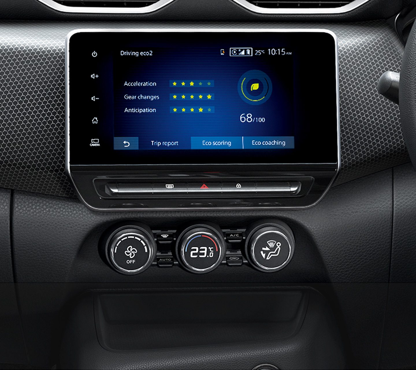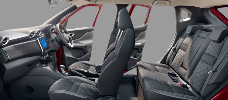 The Magnite’s spacious and premium cabin is one of its standout features. The interior is designed to provide maximum comfort, with ample legroom, headroom, and shoulder room for passengers. The dashboard is well laid out, and the 8-inch infotainment system with Apple CarPlay and Android Auto ensures that passengers stay entertained throughout the journey. The Magnite also comes with a 360-degree around-view monitor and a rearview camera for added convenience.