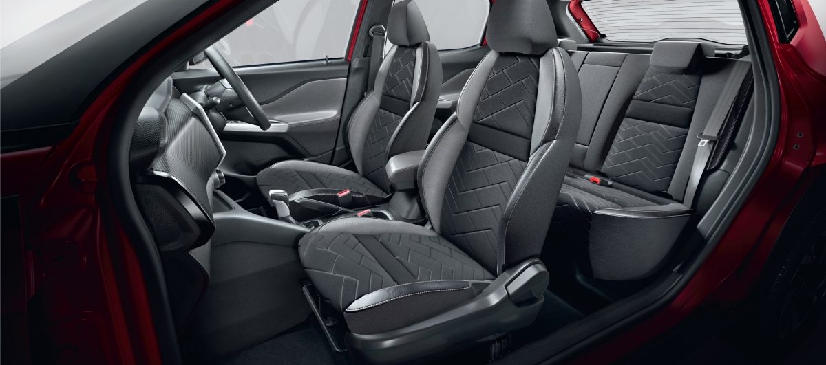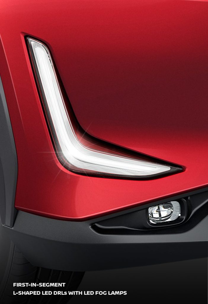 The Nissan Magnite has a bold and aggressive exterior design, with a muscular front grille and sharp lines that give it a sporty look. The LED headlights and daytime running lights add to the modern and stylish appearance. The SUV also features black cladding around the wheel arches and lower body for a rugged appeal, and a roof spoiler for aerodynamics. Available in nine vibrant colors, the Nissan Magnite is sure to turn heads on the road.
