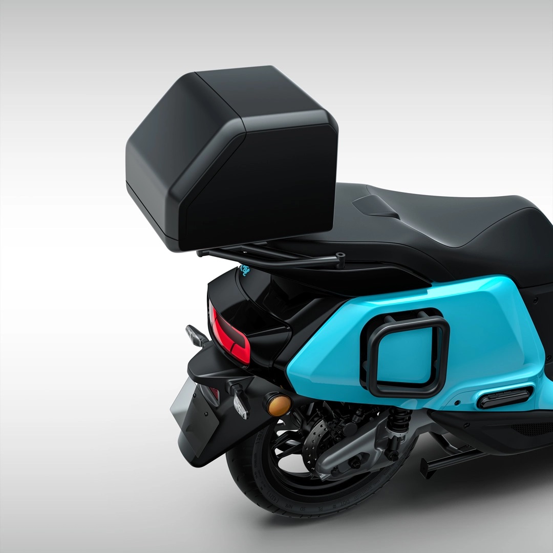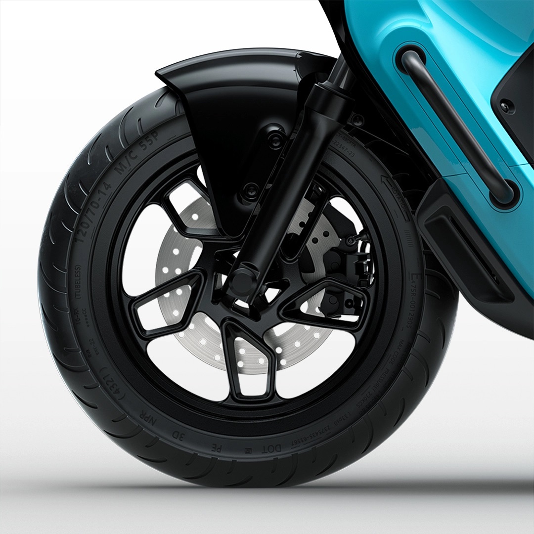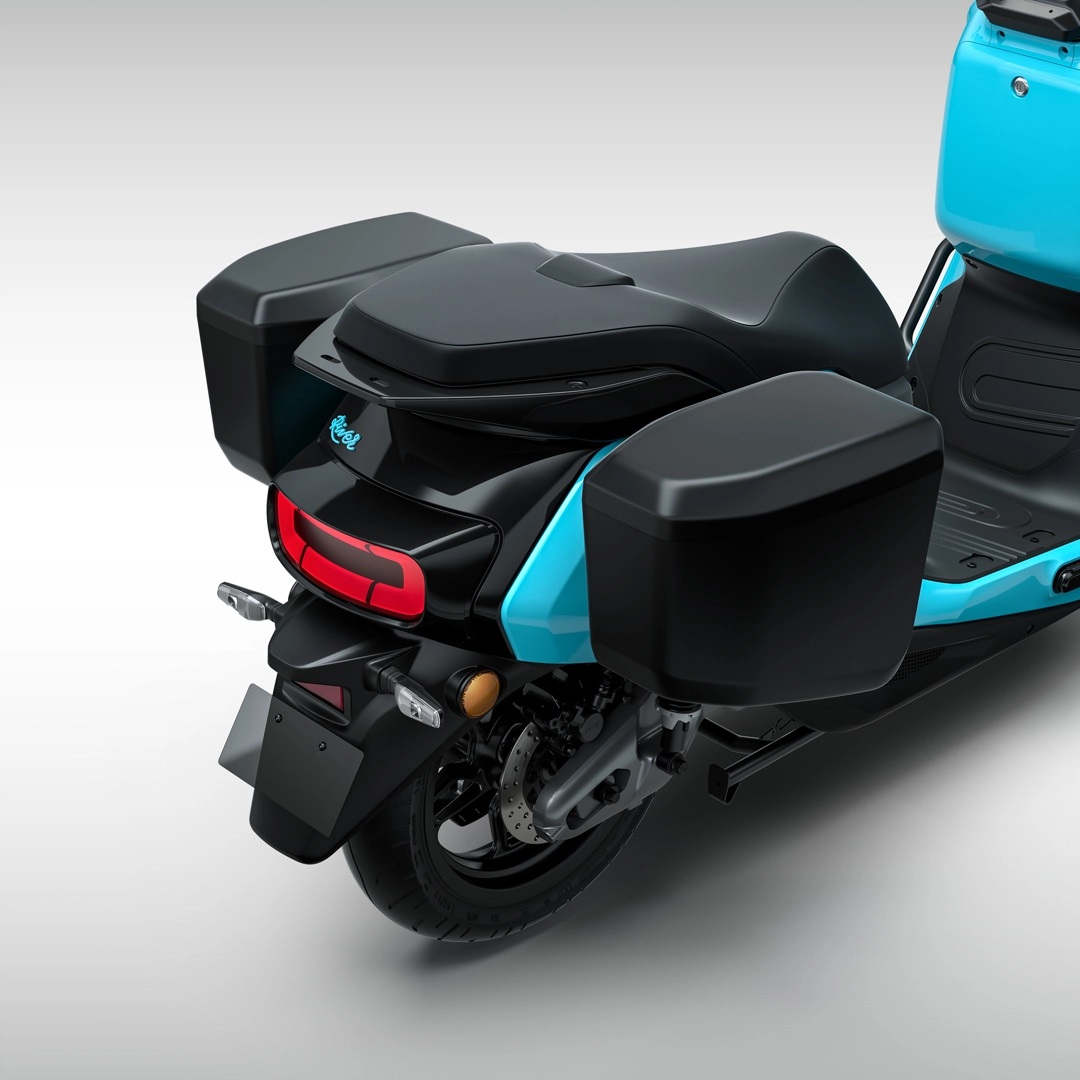 - Offers a true range of up to 120 km on a single charge thanks to its powerful 4 kWh Li-ion battery.