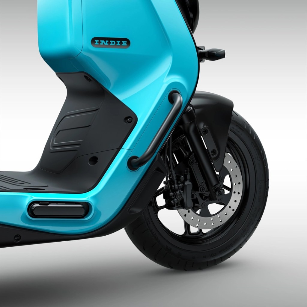 The River Indie Electric Scooter is powered by a mid-drive PMSM motor that delivers a peak power of 6.7 kW (9 BHP) and a maximum torque of 26 Nm. It has a compound belt drive transmission system that ensures smooth and efficient power delivery. The scooter also features riding modes – Eco, Ride, and Rush. The gradeability of the scooter is 18 degrees.