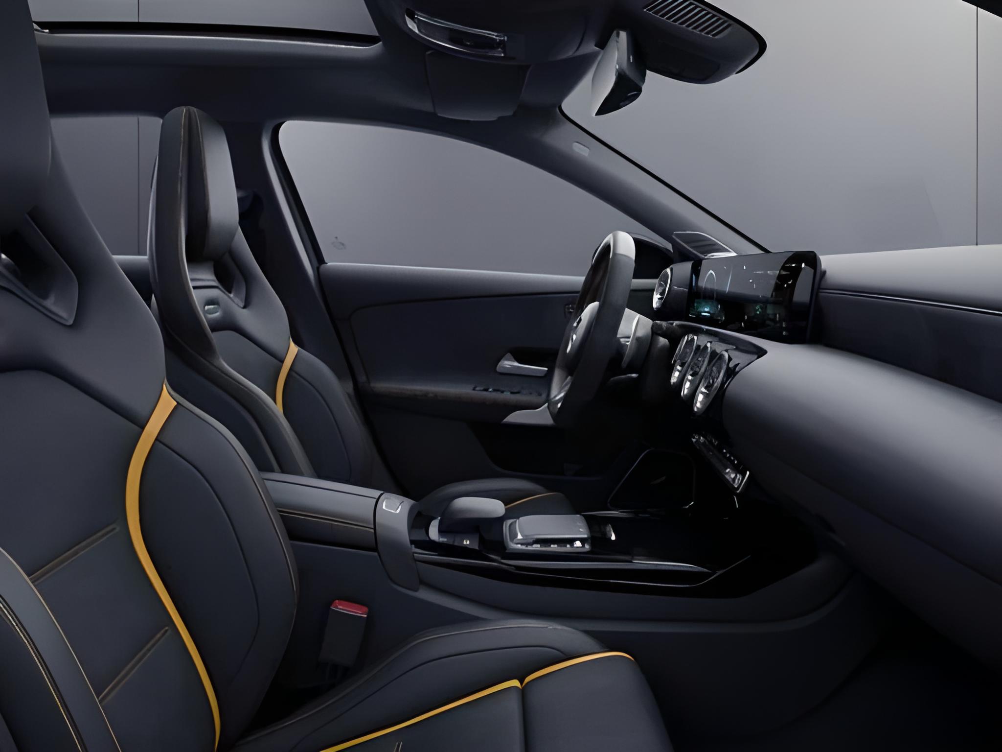 Step inside the Mercedes-AMG A 45 S 4MATIC+, and you’ll be greeted by a luxurious and high-tech interior that is designed to provide the ultimate driving experience. The car features a range of premium materials, including leather upholstery, carbon fiber accents, and aluminum trim. The seats are supportive and comfortable, with adjustable lumbar support and heating and cooling functions. The dashboard is dominated by a large digital display that houses the car’s infotainment system, which includes features like Apple CarPlay and Android Auto, Bluetooth connectivity, and more.