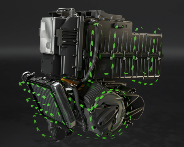 The Matter Aera Electric Bike is powered by a 10 kW motor and has a 4-speed HyperShift manual transmission that provides quick and smooth gear shifts. It also has active liquid cooling to keep the motor and battery at optimal temperature.