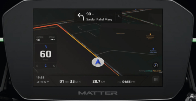 The Matter Aera Electric Bike boasts a sleek and modern design, with a 7-inch touchscreen display that allows you to navigate, monitor your ride, and control media and calls. It also features a smart Battery Management System (BMS) and an Integrated Intelligent Thermal Management System (IITMS) that ensures the safety and longevity of your bike’s motor and battery.