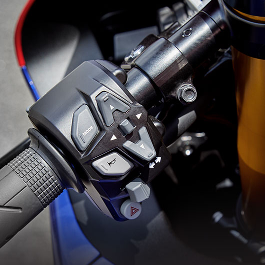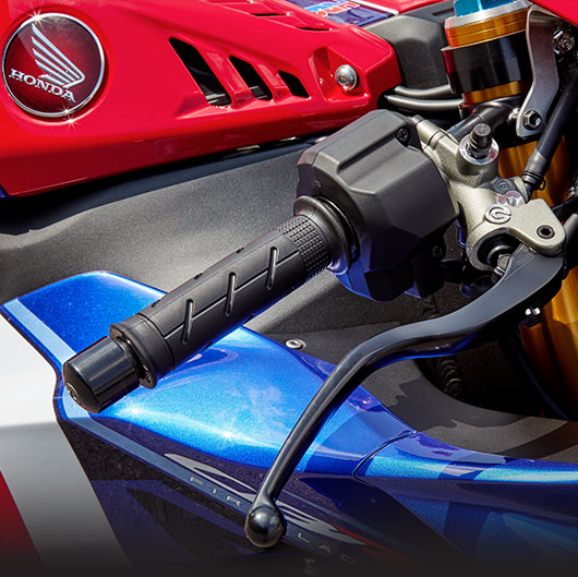 The CBR1000RR-R Fireblade SP come with a 2-channel ABS system, 330mm disc with 4-piston Brembo caliper front brakes, and a 220mm disc with 2-piston Brembo caliper rear brake. The suspension includes a telescopic inverted fork with an inner diameter of 43mm and Öhlins NPX Smart-EC with preload, compression and rebound adjustment, and a Pro-Link with gas-charged Öhlins TTX36 Smart-EC damper featuring preload, compression, and rebound damping.