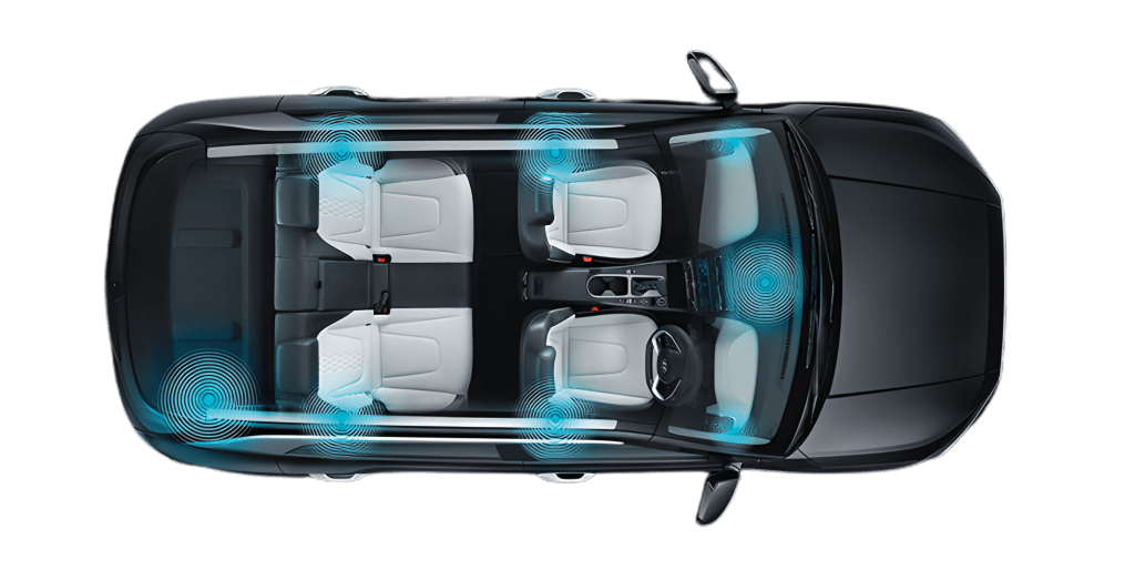 - Low NVH, PESS, auto cruise, surround sound speakers