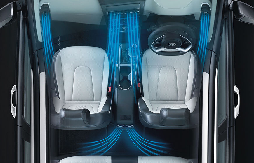 The Hyundai Creta Knight Edition offers ultimate connectivity with advanced Bluelink app, home-to-car with Alexa and Google voice assistants. The electric parking brake with auto hold, auto healthy air purifier, and paddle shifters add to the convenience of passengers. The driver rear view monitor enables the driver to see the rear view while driving forward. The door scuff plates – metallic and leather-wrapped D-cut steering wheel add an extra touch of elegance and sportiness. The ISOFIX amplifies the safety quotient for infants in the rear seat.