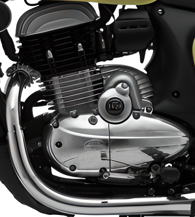 The Jawa Forty-Two has a single-cylinder, four-stroke 294.72cc engine with a compression ratio of 11:1 and bore stroke of 76 x 65 mm. It has a liquid-cooled DOHC system and electronic fuel injection. The motorcycle comes with a twin exhaust system that adds to the overall aesthetic appeal. The constant mesh 6-speed gearbox ensures smooth shifting and effortless riding.