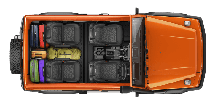 The Force Gurkha Offroad SUV offers unmatched cabin space with four captain seats, ample headroom, legroom, and shoulder room. The easy ingress and egress from the rear door into the widest gangway in the category make space for all your luggage. The spacious interiors with four captain seats and armrests for second row passengers make this four-wheel drive car one of the most comfortable vehicles in its league. The door trims, seat upholstery, and floor console with bottle holders come in a dark grey theme, giving the interiors a modern and sophisticated look.