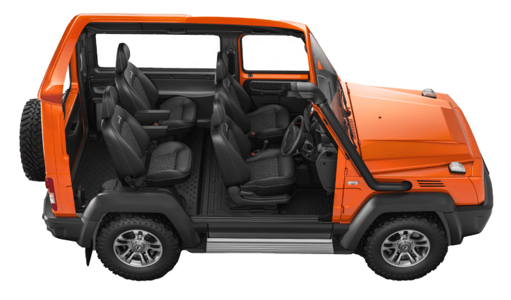 The timeless appeal of the legendary Mercedes G-Wagen inspires the design of the Force Gurkha Offroad SUV. It features a full metal body structure that ensures best-in-class safety and security for the passengers. The Force LED Pro Edge headlamps with full LED high beam and low beam ensure complete visibility during night journeys. The panoramic windows and wide windscreen ensure all-round visibility for the driver and passengers. The All New Force Gurkha boasts of a commanding driving position with tilt and telescopic adjustment of the steering for a comfortable seating position.