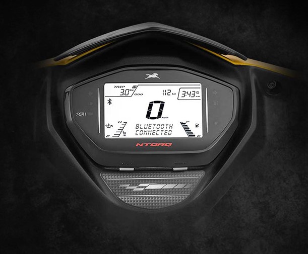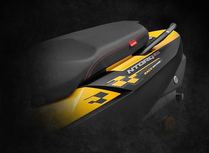 The TVS NTorq 125 Race Edition comes with front disc brakes of 220 mm with SBT and rear drum brakes of 130 mm. The scooter’s suspension system consists of telescopic suspension with hydraulic dampers at the front and coil spring with hydraulic dampers at the rear. The scooter’s tubeless tyres are 100/80-12 at the front and 110/80-12 at the rear, ensuring a comfortable and stable ride.