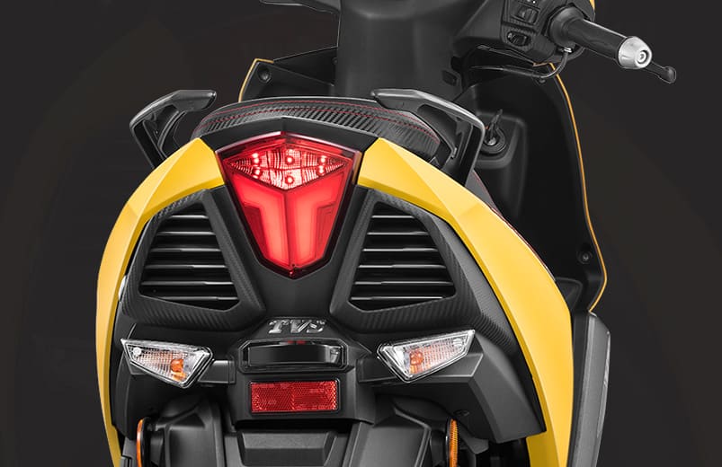 The TVS NTorq 125 Race Edition comes with a stealth aircraft-inspired design that is sure to turn heads. It features a sporty stubby muffler, signature “T” rear lamp, and a split-type rear fender. The scooter has a 3-tone color combination and race-inspired decals, which gives it a stylish look. The afterburner style rear vents add a touch of aggression to the scooter’s design. The scooter’s diamond-cut alloy wheels and bold chunky tyres ensure a stable and comfortable ride.