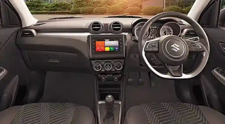 The Maruti Suzuki Swift S-CNG has a comfortable and spacious interior. The car comes with a leather-wrapped steering wheel, a multi-information display, and a touchscreen Smartplay Studio. The car also has features like automatic climate control, adjustable front seat headrests, and a height-adjustable driver’s seat. The car has a seating capacity of five and ample legroom and headroom for passengers.