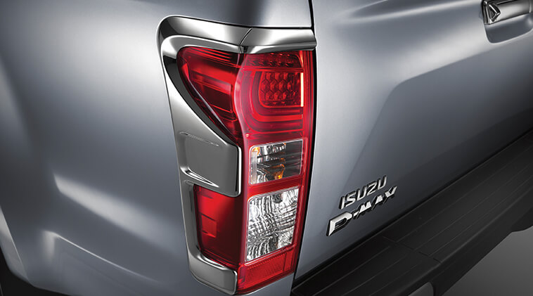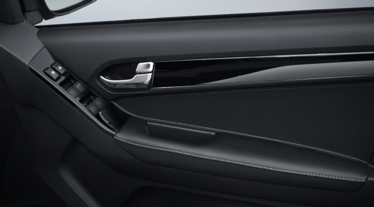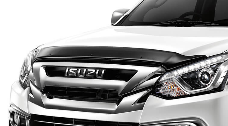 The Isuzu V-Cross Car is a stylish and rugged pickup truck that makes an impression every day. Its exterior features include bi-LED projector headlamps, LED daytime running lights and light guide, diamond cut alloy wheels, easy access stylish side steps, and a shark fin antenna. The interior is equally impressive with sporty lava black interiors, luxurious leather seats, piano black interiors, a rear armrest, and a multi-information display.